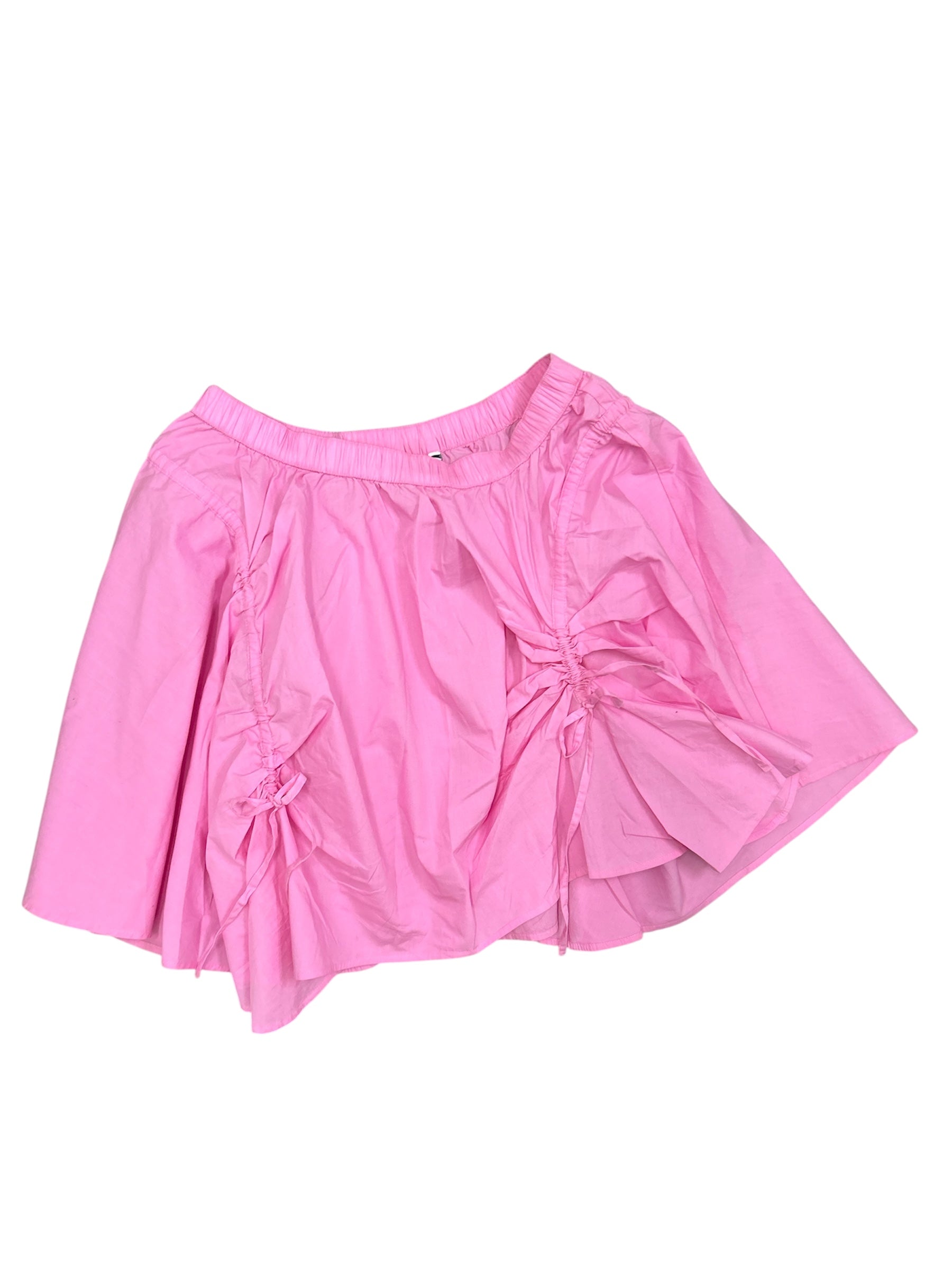 Poplin mini skirt with drawstring and gathered detail